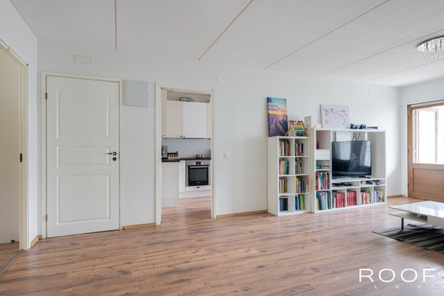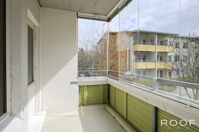 - Valoisa ja tilava olohuone sisäpihan puolella, käynti lasitetulle parvekkeelle