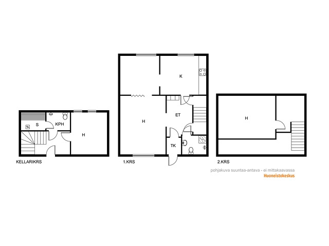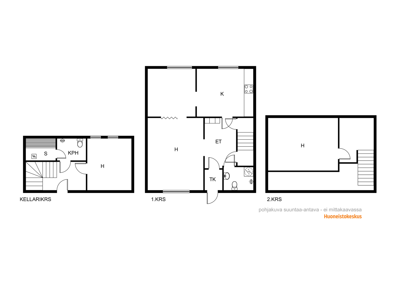 - Asunnon keskikerroksessa sekä kellarikerroksessa kylpyhuone. Kellarikerroksessa lisäksi sauna.