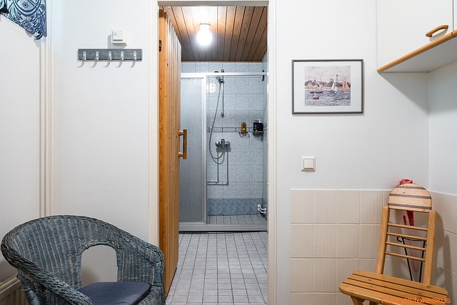 - Allaskaappi, suihkuseinä, peili, lattialämmitys, ja suihku