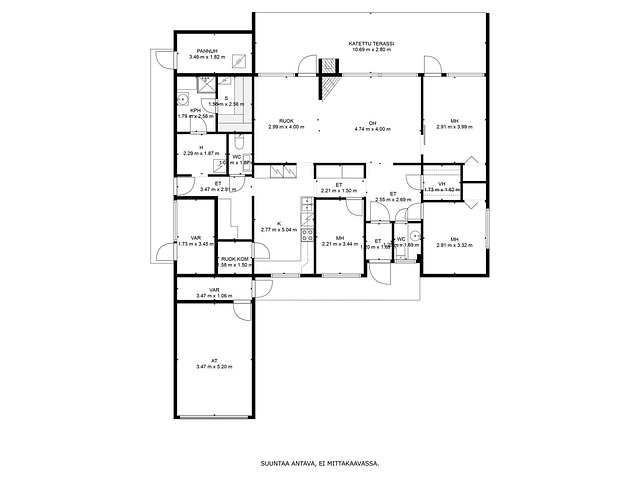 - Pinta-alatiedot on saatu kaupungin/kunnan rakennusvalvonnasta / rakennuspiirustuksista / myyjältä, eikä niitä ole tarkistusmitattu, joten ne saattavat poiketa olennaisestikin nykymääräysten mukaan mitattavista pinta-aloista.