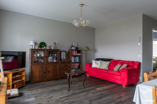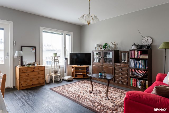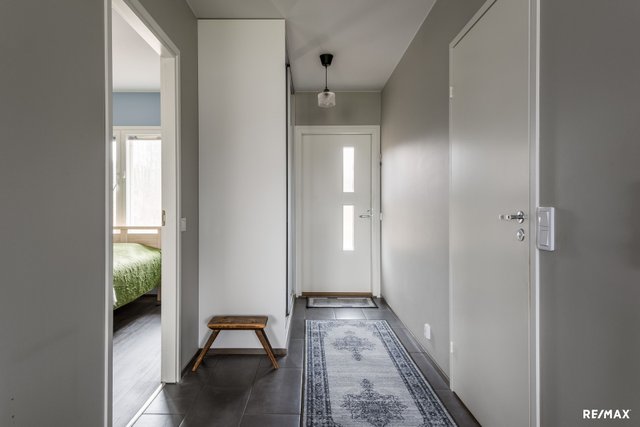 Asunnon sijainti: Palvelut, kuten kauppa, koulu, lukio, päiväkodit ja terveysasema, ovat kävelymatkan päässä.