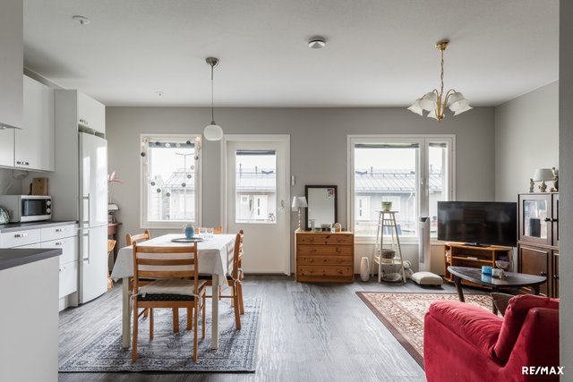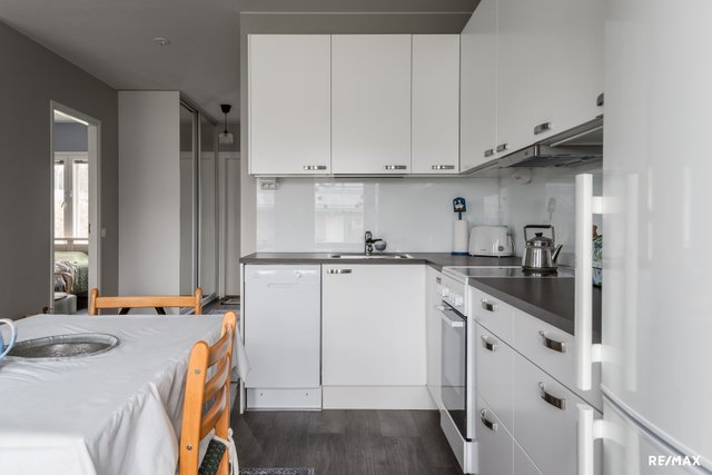 Keittiö on varusteltu tarvittavilla kodinkoneilla. Kaikissa huoneissa lattialämmitys. Asunnossa on myös oma terassi.