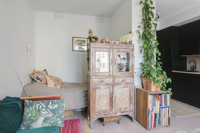 Tyylikäs ja hyväpohjainen yksiö on muuttovalmis. Asunnossa on musta keittiö, integroidut kodinkoneet ja hyvin säilytystilaa. Kylpyhuone on tilava ja sieltä löytyvät liitännät pyykinpesukoneelle ja kuivausrummulle. Yksiön ranskalainen parveke avautuu viihtyisälle