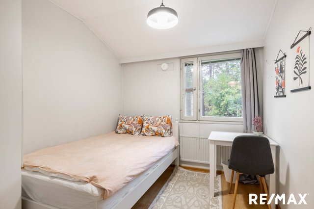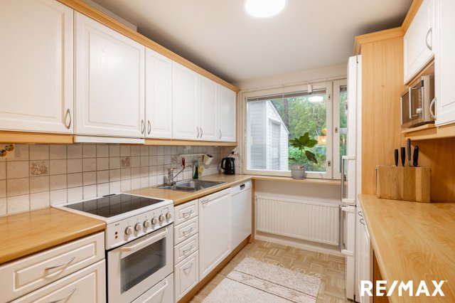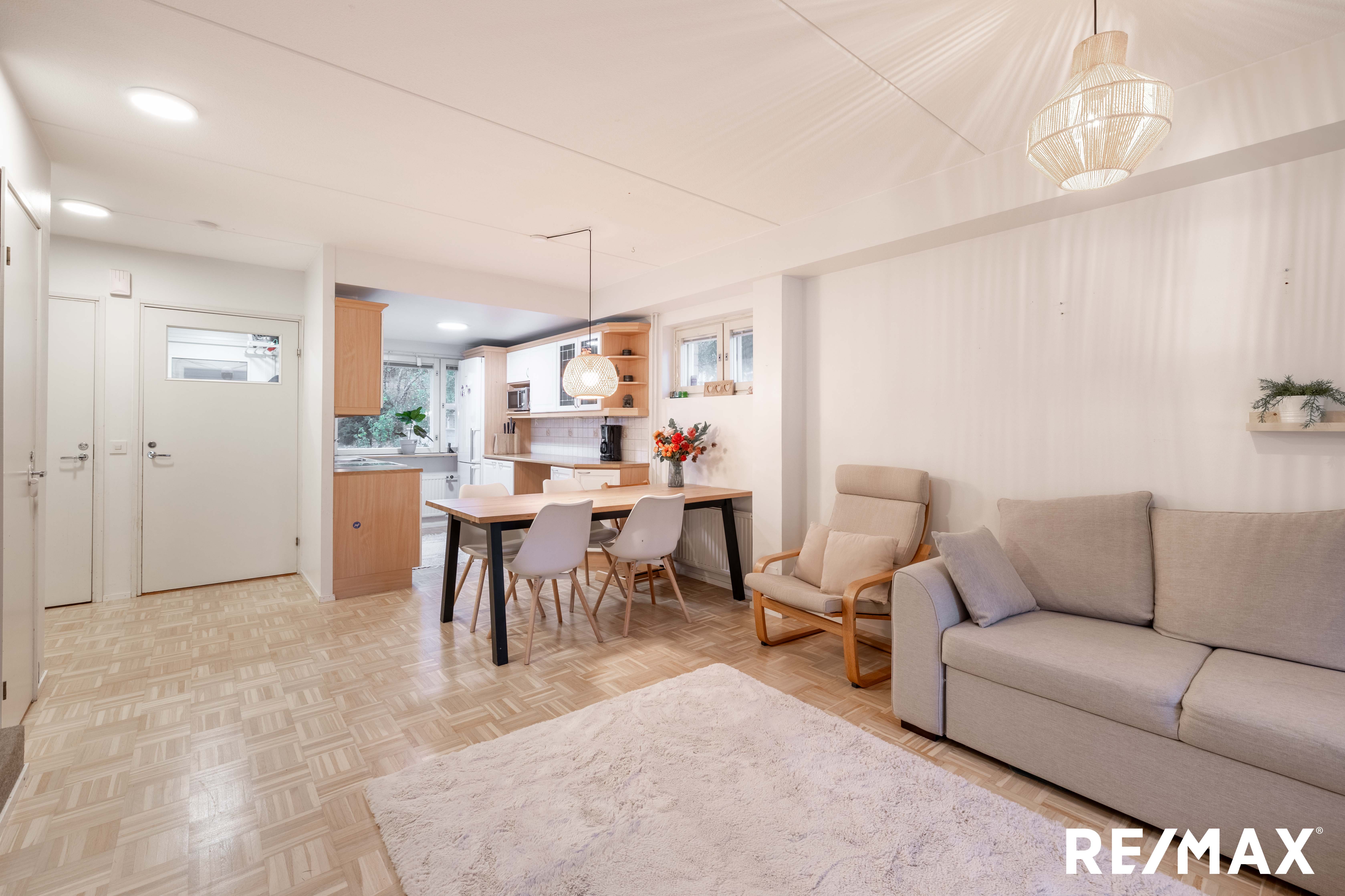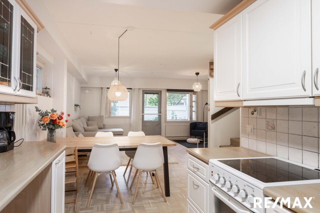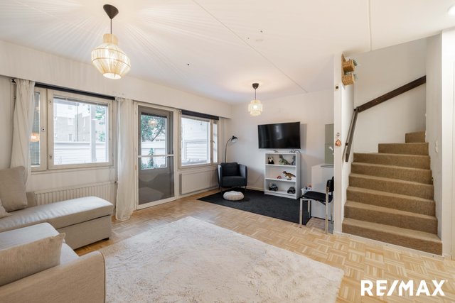 This cozy terraced apartment is located in the quiet and desirable Kurkimäki area of Helsinki. The apartment offers a comfortable setting for family life, as it comprises 87.5 square meters on two floors. Three bedrooms ensure space for both the youngest in the family and guests.