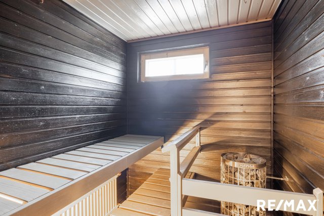 Keittiö on varustettu modernilla induktioliedellä ja muilla tarpeellisilla kodinkoneilla, jotka tekevät ruoanlaitosta sujuvaa. Olohuoneen laminaattilattiat ja maalatut seinät luovat valoisan ja avaran tunnelman. Asunnossa on myös oma sauna, jossa voi rentoutua päivän päätteeksi.