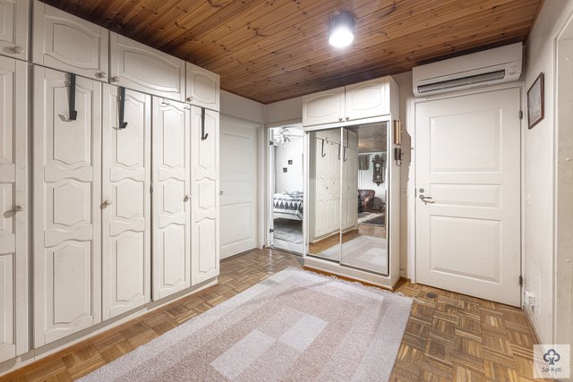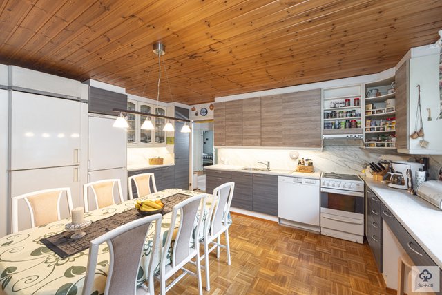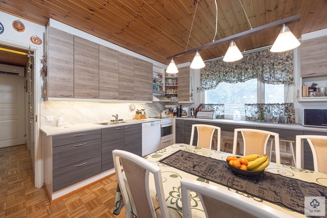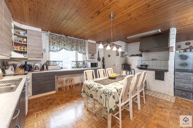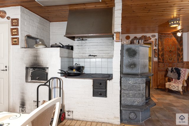 Keittiö on käytännöllinen ja kodikas, ja siellä on puuhella sekä leivinuuni, jotka houkuttelevat leipomaan ja kokkaamaan. Keittiön kaapistojen ovet on uusittu. Olohuoneen parkettilattia ja tapetoidut seinät luovat lämpimän ja kutsuvan ilmapiirin. Kolme makuuhuonetta tarjoavat runsaasti tilaa perheelle tai vieraille.