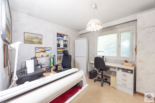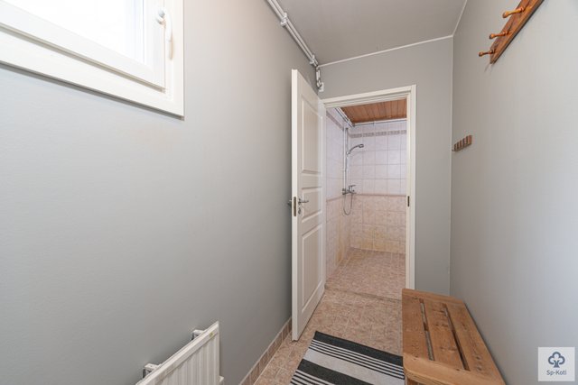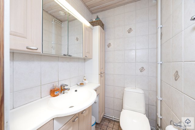 Kylpyhuone on varustettu lattialämmityksellä ja wc-istuimella, wc-tiloja on kaksi. Käytännöllisessä kodinhoitohuoneessa on oma uloskäynti, mikä helpottaa arkea.