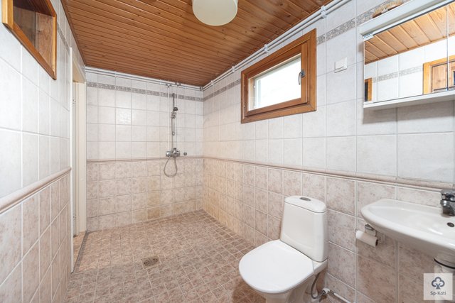 - WC-istuin, suihku, lattialämmitys, pesuallas, ja ikkuna ulos