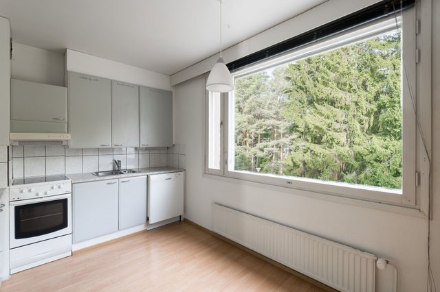Asunnossa on käytännöllinen pohjaratkaisu, joka sisältää kaksi makuuhuonetta, olohuoneen ja keittiön. Keittiö on varusteltu nykyaikaisilla laitteilla, kuten astianpesukoneella ja keraamisella liedellä. Olohuoneesta on kulku parvekkeelle, josta voi nauttia vehreistä näkymistä.