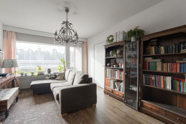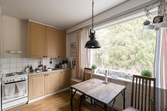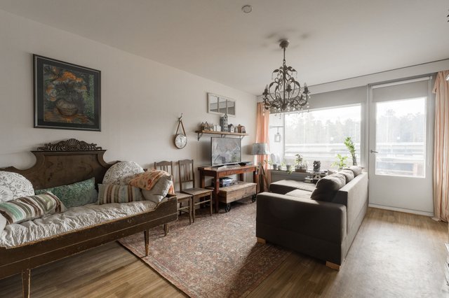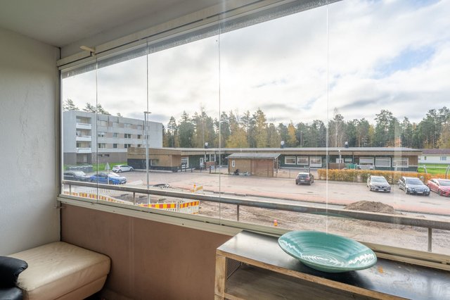 Asunnossa on tilava olohuone, josta pääsee lasitetulle parvekkeelle – täydellinen paikka aamukahvin nauttimiseen. Keittiö on varustettu peruslaitteilla, ja kylpyhuoneessa on pesukoneliitäntä, joka helpottaa arkea. Makuuhuoneissa on laminaattilattiat ja seinät ovat osittain tapetoituja, mikä luo kodikkaan tunnelman.