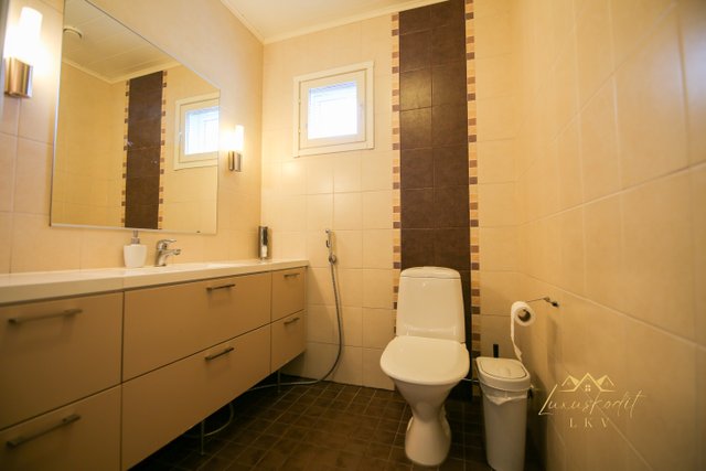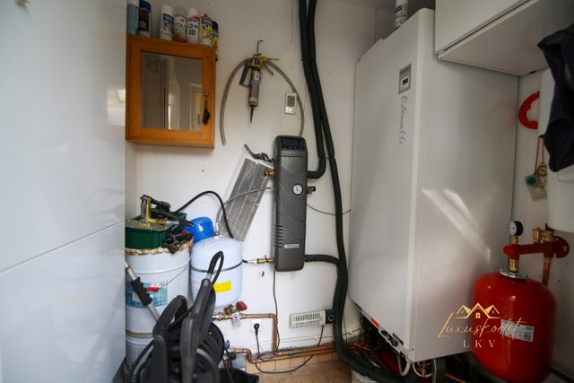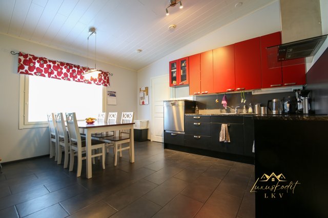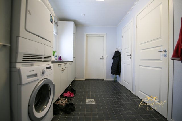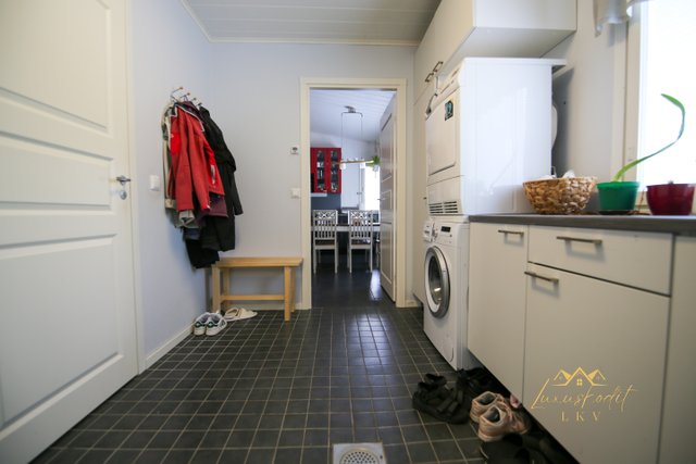 - Pesukoneliitäntä, lattialämmitys, pöytätaso, lattiakaivo, pesuallas, ja keskuspölynimuri