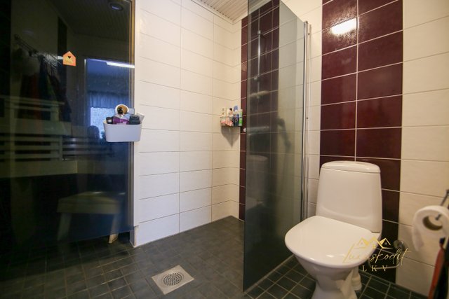 - WC-istuin, suihkuseinä, lattialämmitys, ja suihku