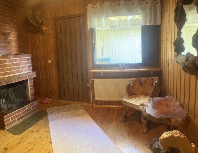 - Takkahuone toimii myös pukuhuoneena, avotakka