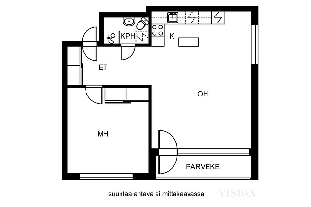 2 h. avokeittiö, lasitettu parveke (yj. 2h+k)