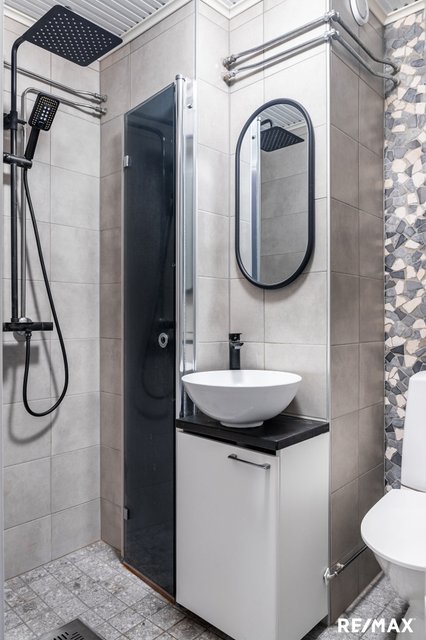 Kylpyhuone on uusittu kokonaan vuonna 2021, joten se vastaa nykypäivän vaatimuksia ja on huoleton käyttää pitkälle tulevaisuuteen.
