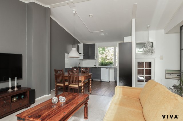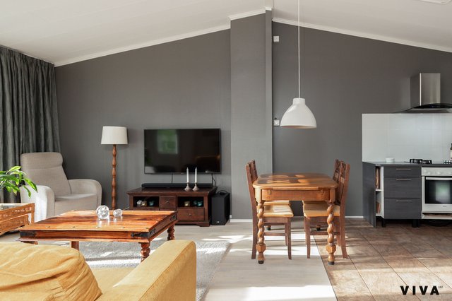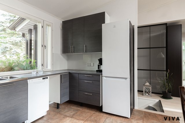 Kodin sydän on tilava ja valoisa avokeittiö, joka on hiljattain päivitetty. Laadukas kaasu-sähköliesi tekee ruoanlaitosta nautinnon ja kutsuu koko perheen yhteisen pöydän ääreen. Keittiön lisäksi takkahuone tarjoaa lämpimän ja kodikkaan tilan yhdessäoloon – täydellisen paikan rauhoittua illan hämärtyessä.