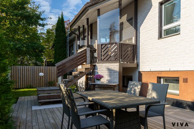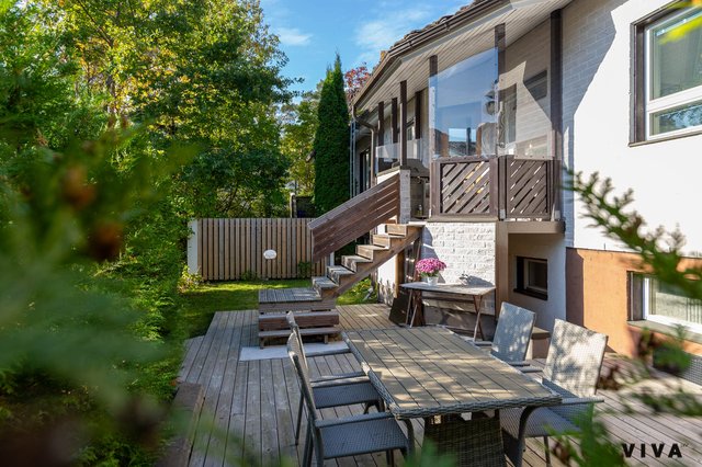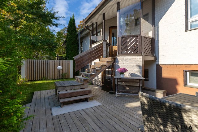 Kolme makuuhuonetta tuo joustavuutta niin perheen arkeen kuin etätyöhön, ja kaksi wc:tä helpottaa käytännön elämää. Lisäksi alakerran erillinen huone tarjoaa monikäyttöisen tilan esimerkiksi harrasteille, työtilaksi tai kotistudioksi. Vehreä terassi on kuin oma kesäkeidas, jossa koko perhe viihtyy. Pihapiiri on erityisen lapsiystävällinen, sillä taloyhtiön oma turvallinen leikkipaikka tarjoaa lapsille huolettomat puitteet leikkiin ja yhdessäoloon.