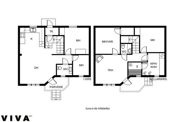 - Alakerran huoneita ei pienempien ikkunoiden vuoksi lasketa mukaan viralliseen asuinpinta-alaan. Ei tarkistusmitattu. Pinta-alat saattavat tämän ikäisissä kohteissa (yhtiö rekisteröity ennen 01.01.1992) poiketa olennaisestikin asuinrakennusten nykyisten mittaustapojen ja standardien (SFS 5139) mukaan laskettavasta asuintilojen pinta-alasta. Pinta-ala voi siis olla edellä mainittua pienempi tai suurempi.