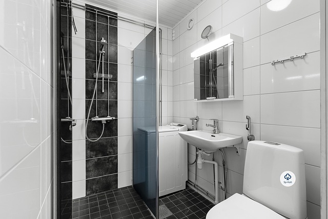 - Suihkuseinä, pesukoneliitäntä, suihku, peilikaappi, ja wc-istuin