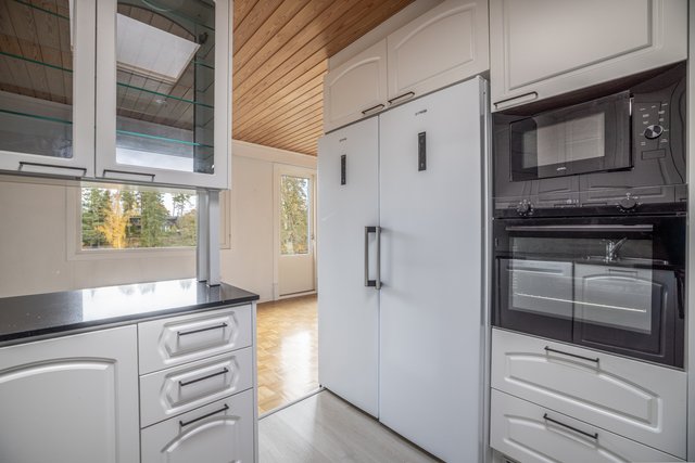 Keittiö on hyvin varusteltu ja sieltä löytyy kaikki tarpeellinen arjen sujuvuuden takaamiseksi. keittiön kaapistot on uusittu v. 2023. Kolme makuuhuonetta tarjoavat riittävästi tilaa perheelle tai työskentelytilaksi. Sauna ja moderni kylpyhuone lattialämmityksellä lisäävät asumismukavuutta.