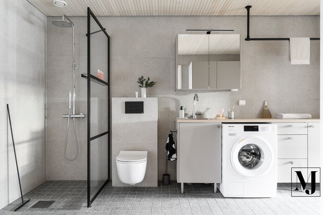 - Tämä hurmaava, spa-henkinen kylpyhuone-kodinhoitotilan kokonaisuus on valmistunut 1/2023. Tilassa yhdistyvät käytännöllisyys ja harmooninen tunnelma. Varusteluun kuuluvat seinä-wc, sadesuihku, suihkuseinä, allaskaappi, peilikaappi sekä kivasti kaapistotilaa. Pehmeä värimaailma saa ilmeeseen lämpöä ja mustat yksityiskohdat tuovat kokonaisuuteen modernia ryhtiä. Kylpyhuoneesta on suora kulku takapihan terassille, mikä viimeistelee tilan ainutlaatuisen ja viihtyisän tunnelman.