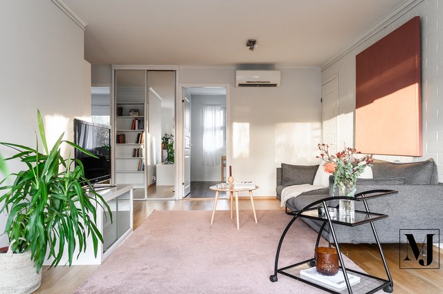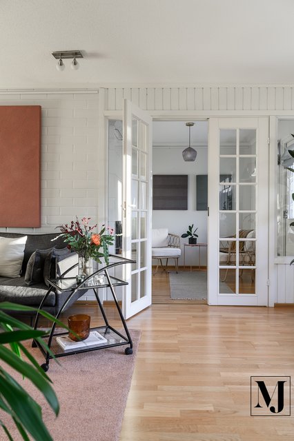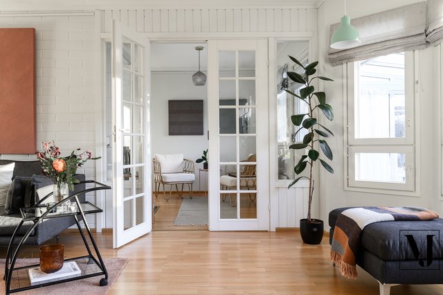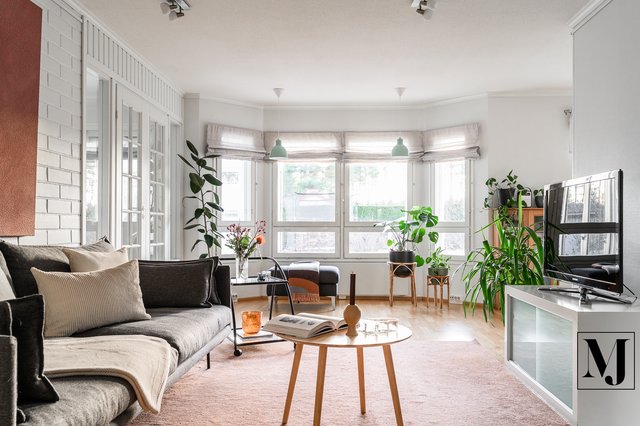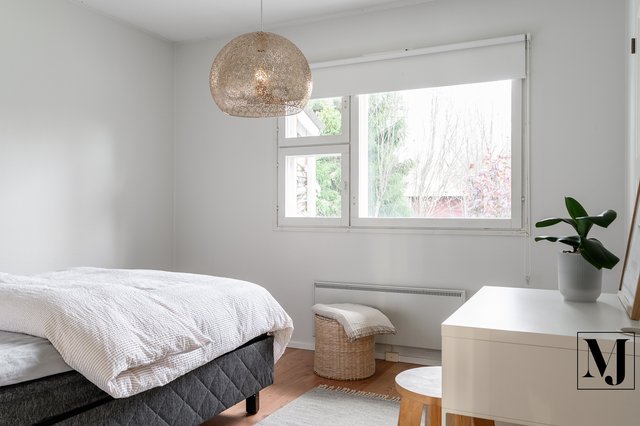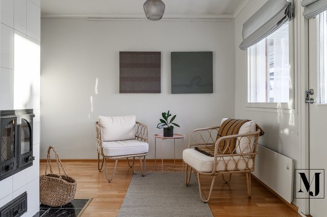 Valoisa ja tilava olohuone kutsuu viihtymään ja kaunis parkettilattia tuo tilaan lämpöä. Ilmalämpöpumppu huolehtii asumismukavuudesta ympäri vuoden. Keittiötä on päivitetty ja sen tyyli on ajattoman vaalea.