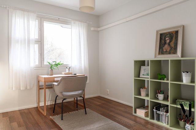 - Valoisa ja tilava olohuone tarjoaa miellyttävät puitteet yhdessäoloon ja rentoutumiseen. Kaunis parkettilattia tuo tilaan lämpöä ja ilmettä. Ilmalämpöpumppu lisää asumismukavuutta niin kesähelteillä kuin lämmitykseenkin. Avara tila antaa hyvät mahdollisuudet sisustaa juuri oman tyylin mukaan.