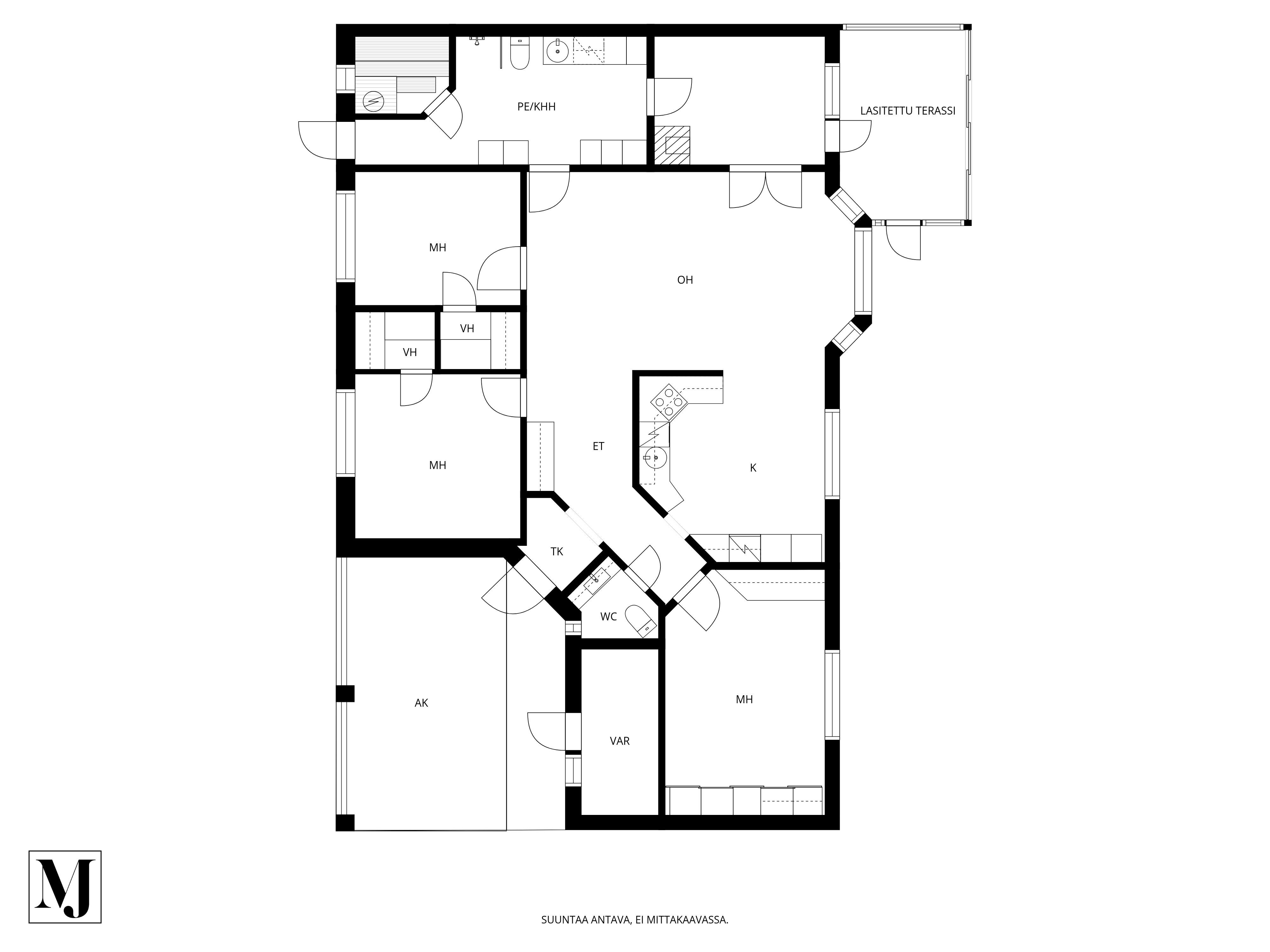 - Huoneiston pinta-ala on 118m2, lämmin varasto 4,6m2 ja lasitettu terassi n.7m2. Ei tarkistusmitattu. Pinta-ala voi siis olla edellä mainittua pienempi tai suurempi.