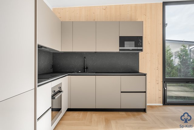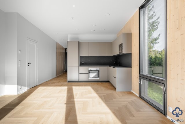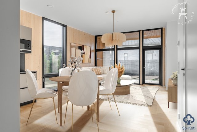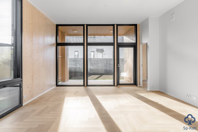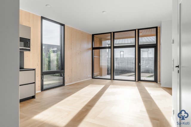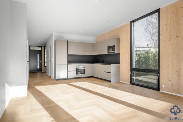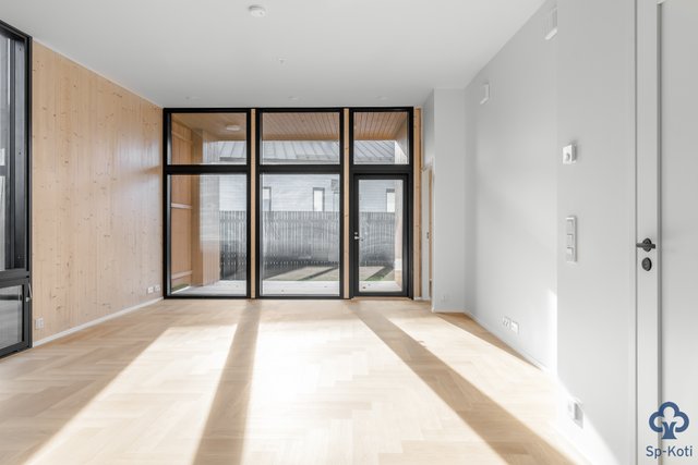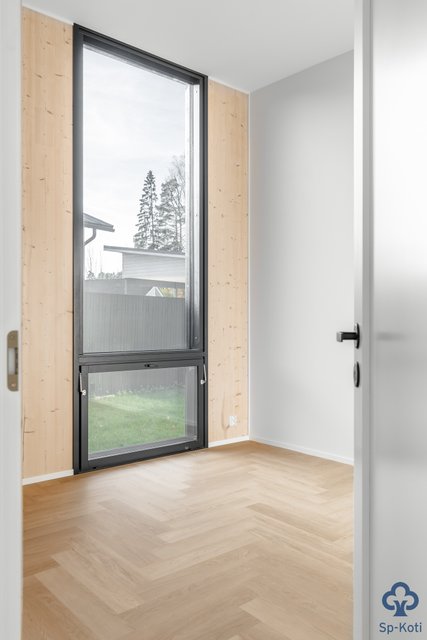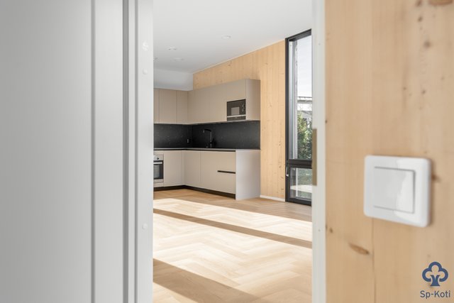 Aivan Turun vieressä Kaarinan Kuusistossa uusia asukkaita odottaa asumaton paritalohuoneisto, jonka materiaalina on käytetty ekologista ja luonnollisesti hengittävää CLT-massiivipuuta.