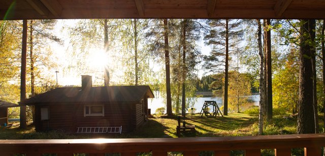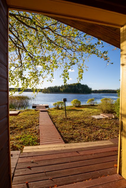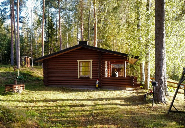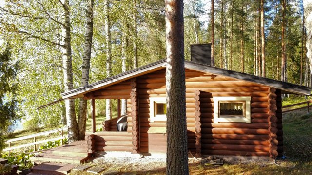 - Erillinen saunarakennus pukuhuoneella ja kuistilla varustettuna