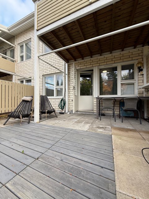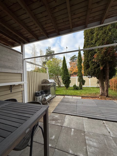 - Takapihalla on terassi, joka on osittain kiveystä ja osittain lautaa. Lisäksi takapihalla on pieni nurmikkoalue.