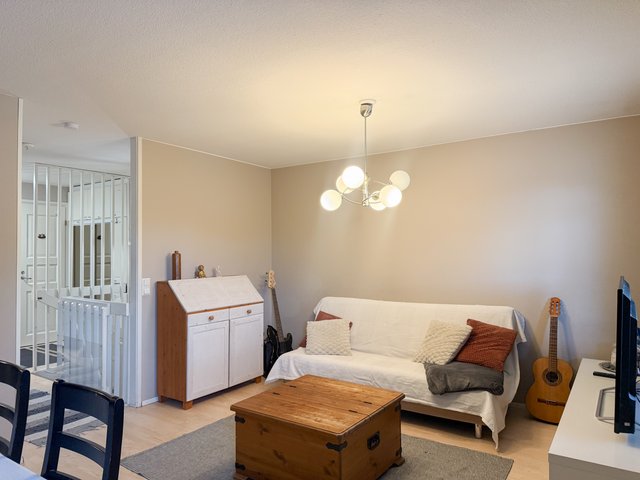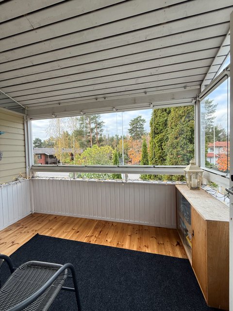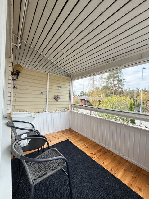 Siistikuntoinen rivitalokoti suositulla Kappelinluhdan asuinalueella. Mäyräpolku 1 osoitteessa sijaitseva kolmio on erinomainen koti sinulle, joka arvostat rivitaloasumisen helppoutta, haluat oman pienen pihan, ja lyhyen etäisyyden kouluihin sekä kaupungin palveluihin. Hyvin hoidetussa taloyhtiössä sijaitsevan kolmion asuintilat ovat kahdessa kerroksessa. Sisään käydään yläkerran tiloihin. Yläkerrassa on tuulikaappi, eteisaula, keittiö, olohuone, keittiöstä eroteltu pieni makuutila, erillinen wc, sekä lasitettu parveke. Alakerrassa on kaksi makuuhuonetta, aulatila, sekä kylpyhuone/wc/sauna. Toisesta makuuhuoneesta on ovi takapihan terassille, jossa hoituvat yhteiset grillihetket pitkälle vielä syksyyn. Sisäänkäynnin edustalla on ulkovarasto ja autollesi on katospaikka. Tule tutustumaan tähän kodikkaaseen kolmioon, ja osta se omaksesi.