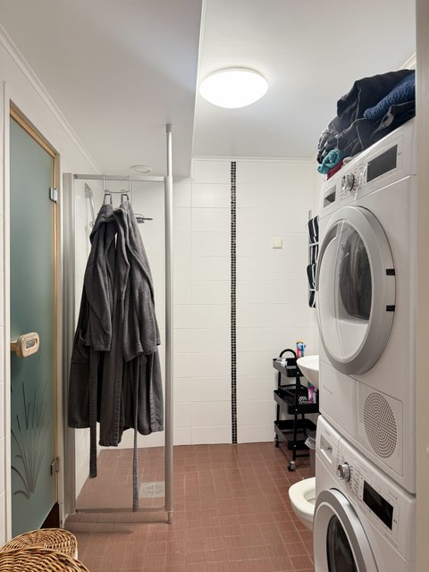 - Lattialämmitys, wc-istuin, suihku, pesukoneliitäntä, ja suihkuseinä