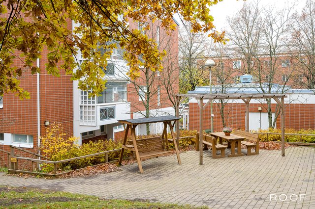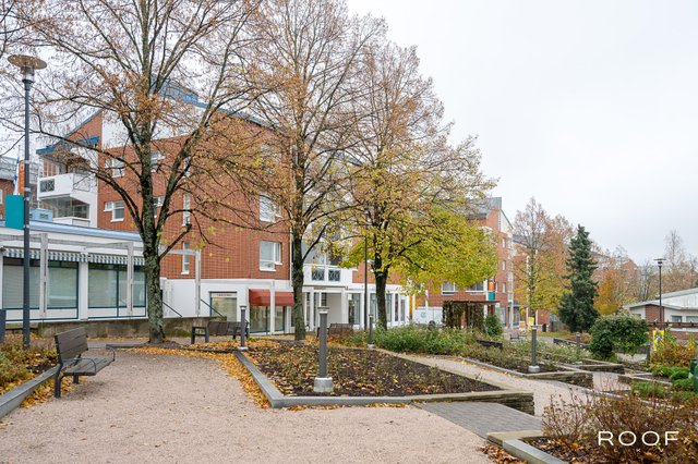 Helppoa asumista myös autottomalle, asunnon vieressä kävelykatu, joten liikenteen hälyä voi välttää.