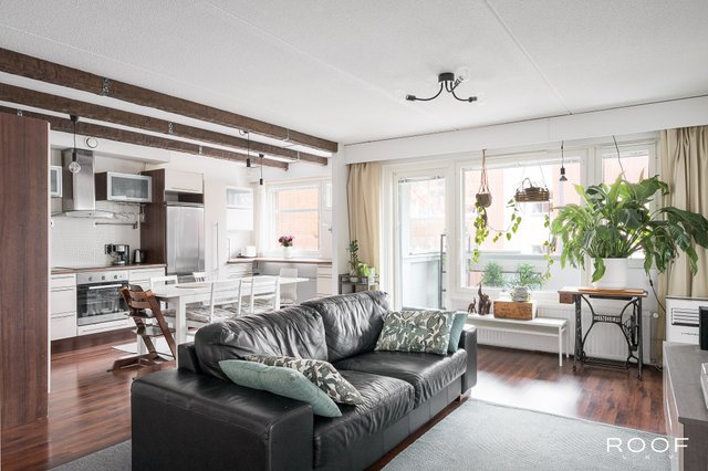 Asunnossa on kolme makuuhuonetta, avara olohuone ja avokeittiö, joka on varustettu kaikilla tarvittavilla kodinkoneilla. Oma sauna tarjoaa rentouttavia hetkiä pitkän päivän päätteeksi. Etelään suuntautuva lasitettu parveke toimii viihtyisänä lisätilana ympäri vuoden.