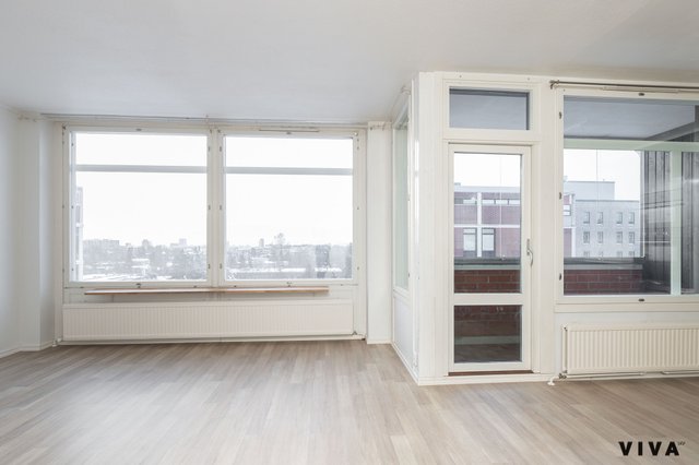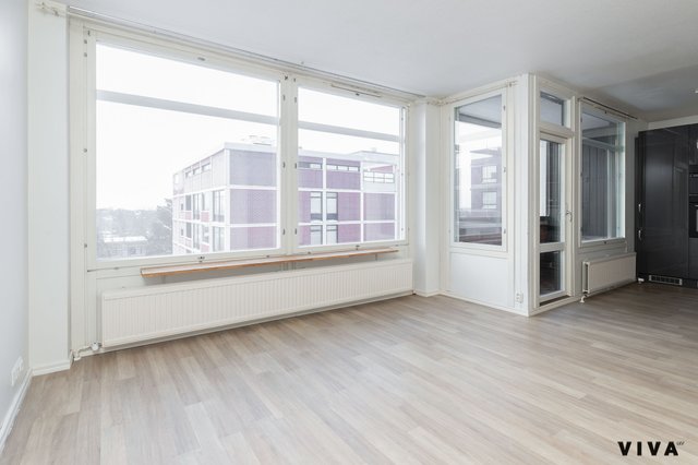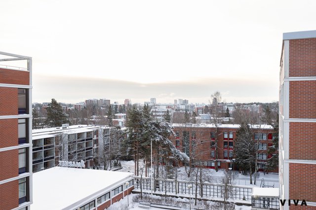 Tämä ihastuttava koti sijaitsee talon ylimmässä, 7. kerroksessa ja tarjoaa poikkeuksellisen avarat näkymät Espoosta aina Helsingin asti.