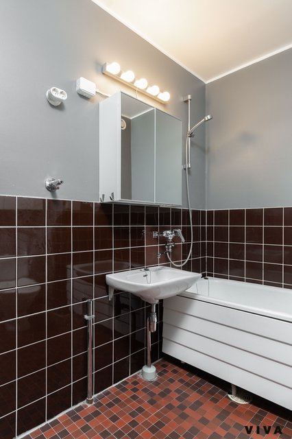 - WC-istuin, suihku, kylpyamme, pesukoneliitäntä, lattialämmitys, peilikaappi, ja pesuallas