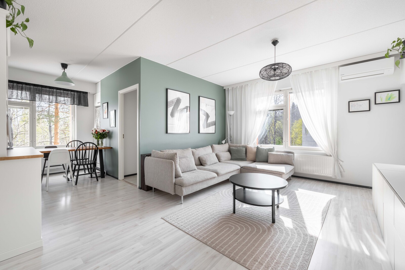 Tämä kolmannen kerroksen koti tarjoaa erinomaiset puitteet niin perheelle kuin pariskunnallekin – tilaa, toimivuutta ja rauhaa arkeen viihtyisässä ympäristössä.
