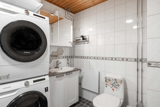 - Suihkuseinä, pesukoneliitäntä, wc-istuin, peilikaappi, suihku, ja lattialämmitys