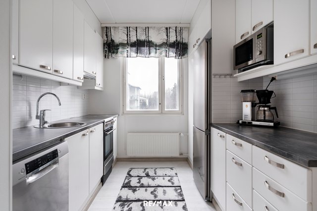 - Jääkaappipakastin, liesi, liesituuletin, mikroaaltouuni, ja astianpesukone