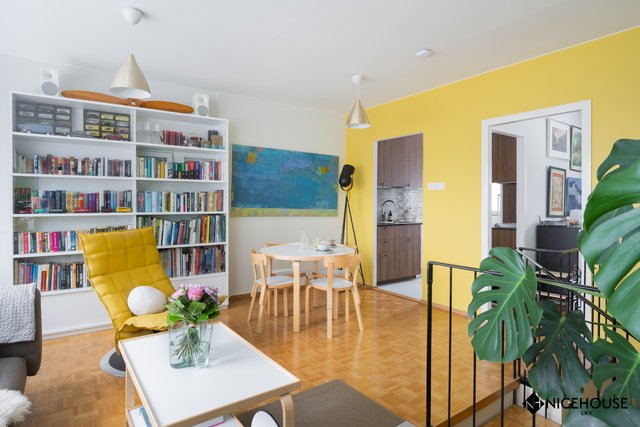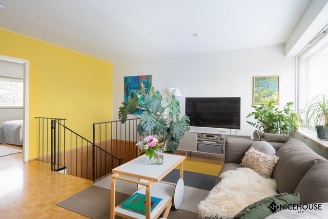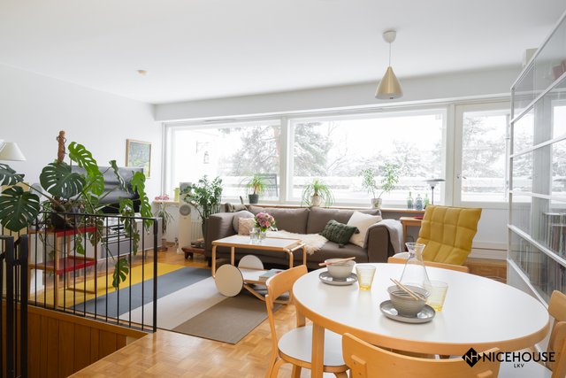 Kahteen tasoon sijoittuva huoneisto on valoisa ja avaran tuntuinen.
