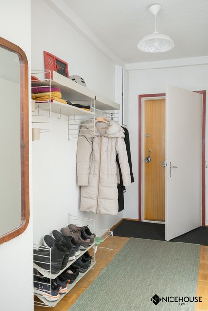 Säilytystilaa on makuuhuoneiden kaapeissa, sekä tilavassa vaatehuoneessa, minkä lisäksi lisää säilytystilaa löytyy oman asunnon ulko-oven vastapäätä olevasta omasta lämpimästä varastosta sekä häkkivarastosta.