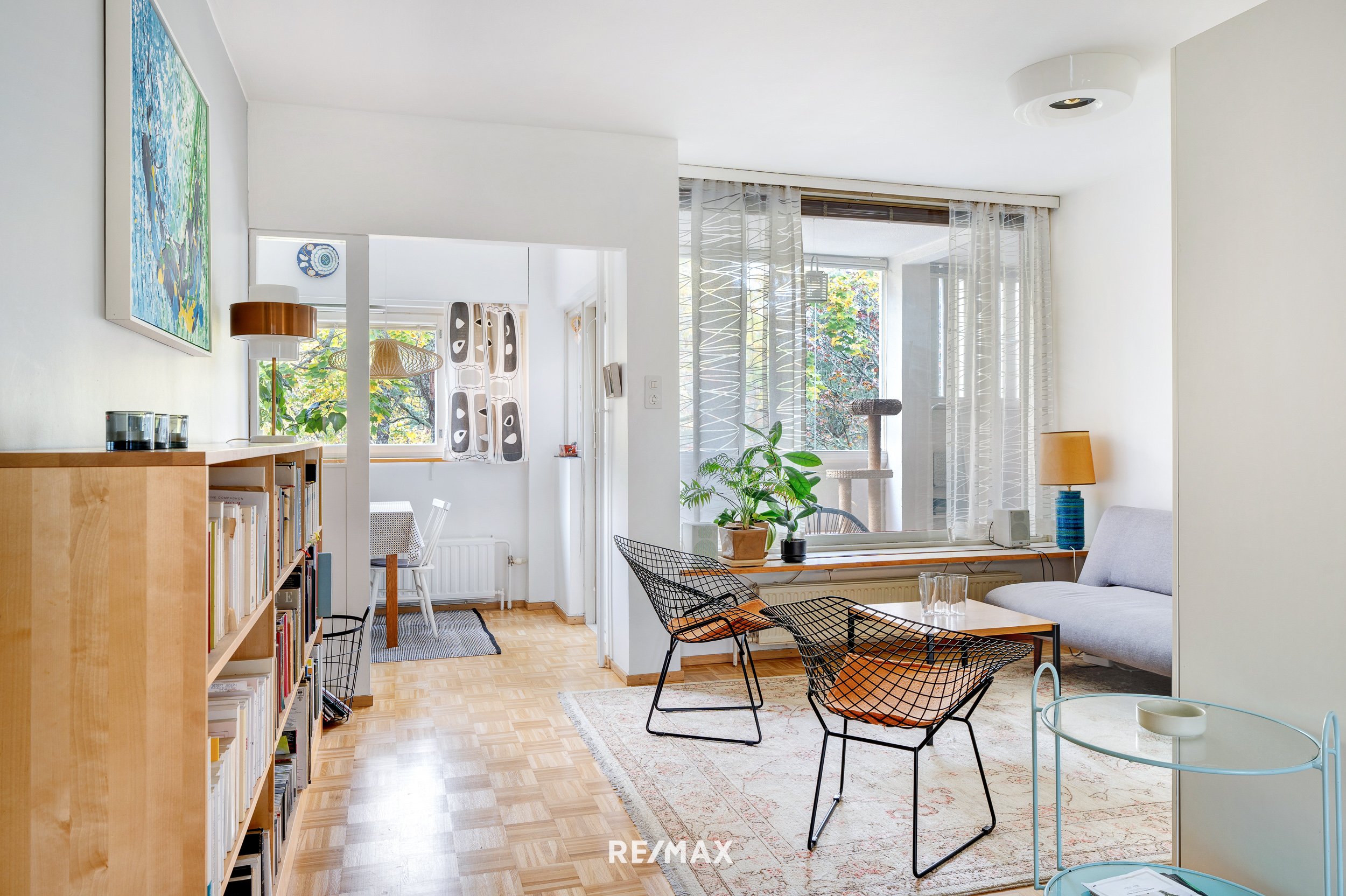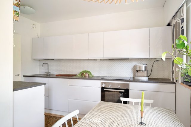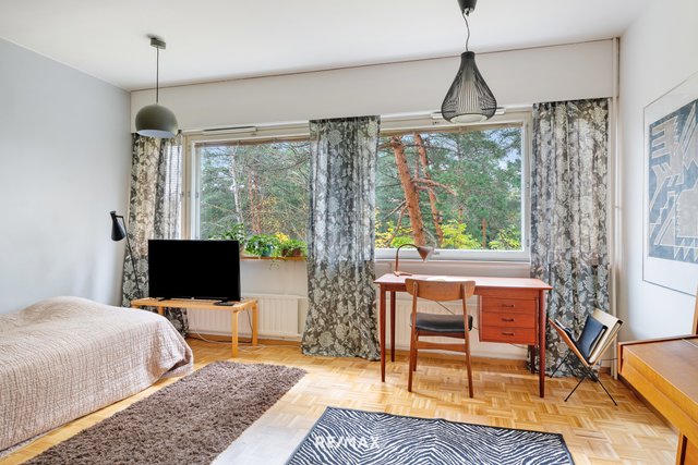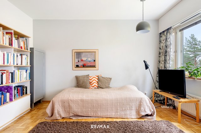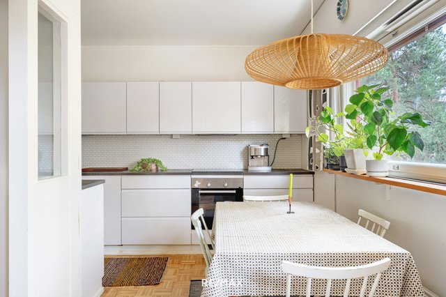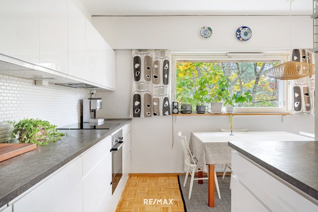 Asunnossa on kaikki kohdallaan. Tunnelma on rauhallinen, remontit on suoritettu ikää kunnioittaen ja neliöt käytetty hyvin hyödyksi. Keittiö on modernisoitu vastaamaan tämän päivän tarpeita ja ruokapöydälle on oma, selkeä paikkansa. Olohuone on koko perheen yhteistä tilaa ja lasitettu parveke tarjoaa luonnonläheisen oleskelutilan varhaisesta keväästä pitkälle syksyyn.