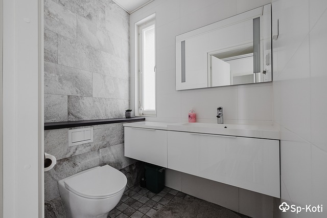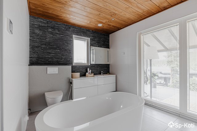 - Alakerrassa erillinen WC. Yläkerrassa pesutilojen yhteydessä WC.