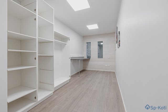 Yläkerran aulatilaan rakennettu lisämakuuhuone ja yläkerran erillinen wc muutettu vaatehuoneeksi.