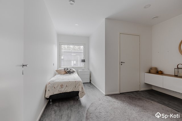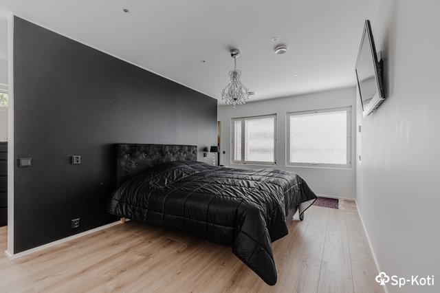 - Alakerrassa yksi makuuhuone. Yläkerrassa on kaksi makuuhuonetta, joista päämakuuhuone on yhdeltä sivulta avointa tilaa.