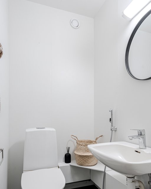 - Pesukoneliitäntä, pesuallas, ja peilikaappi