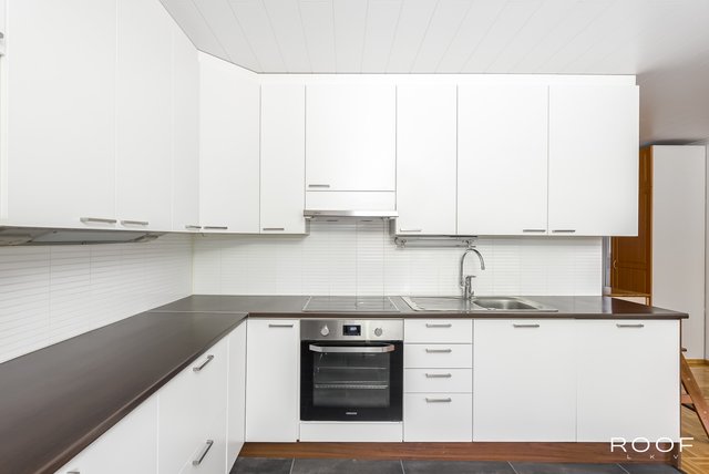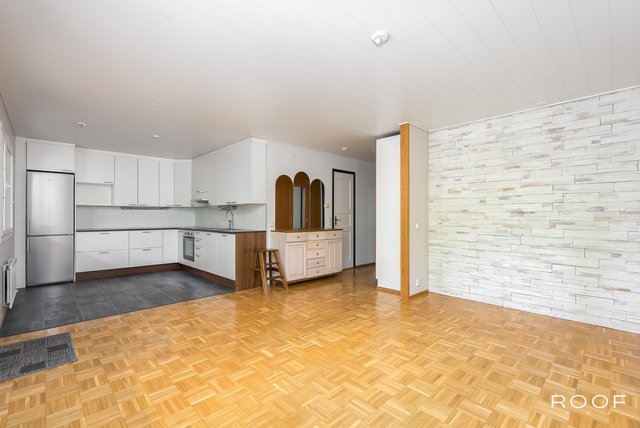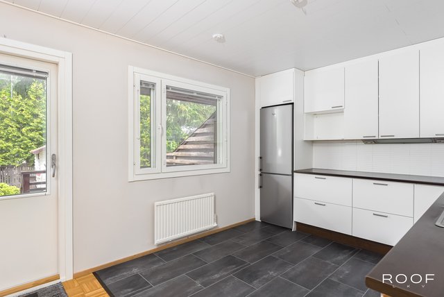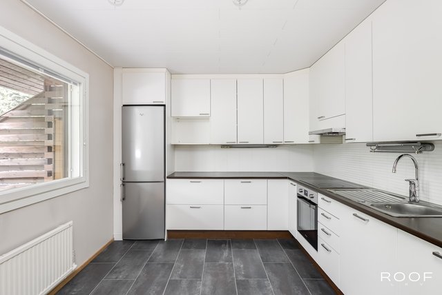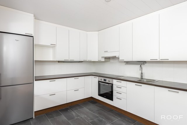 - Varustus: jääkaappi/pakastin, liesituuletin, astianpesukone. Liesi: sähköliesi, erillisuuni. Lattia: laminaatti. Seinät: maalattu.