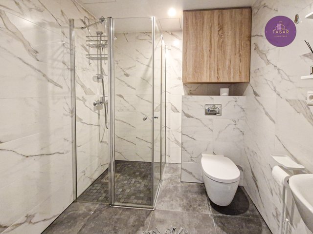- WC-istuin, suihku, kylpyamme, pesuallas, allaskaappi, ja peilikaappi