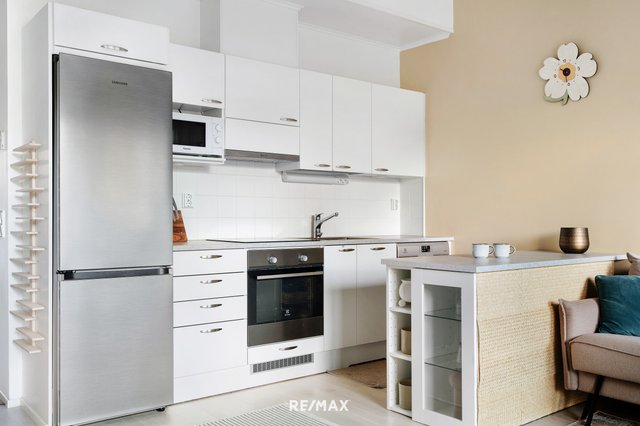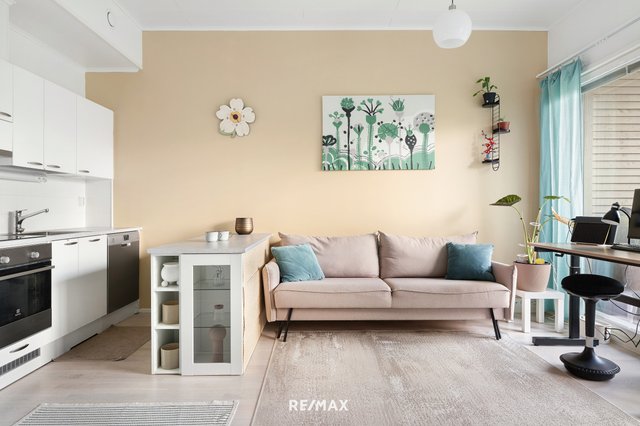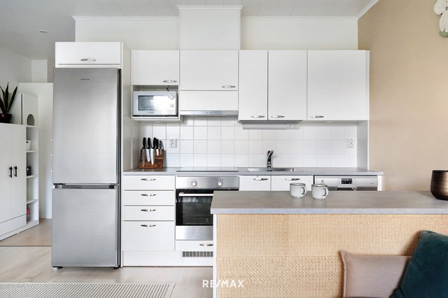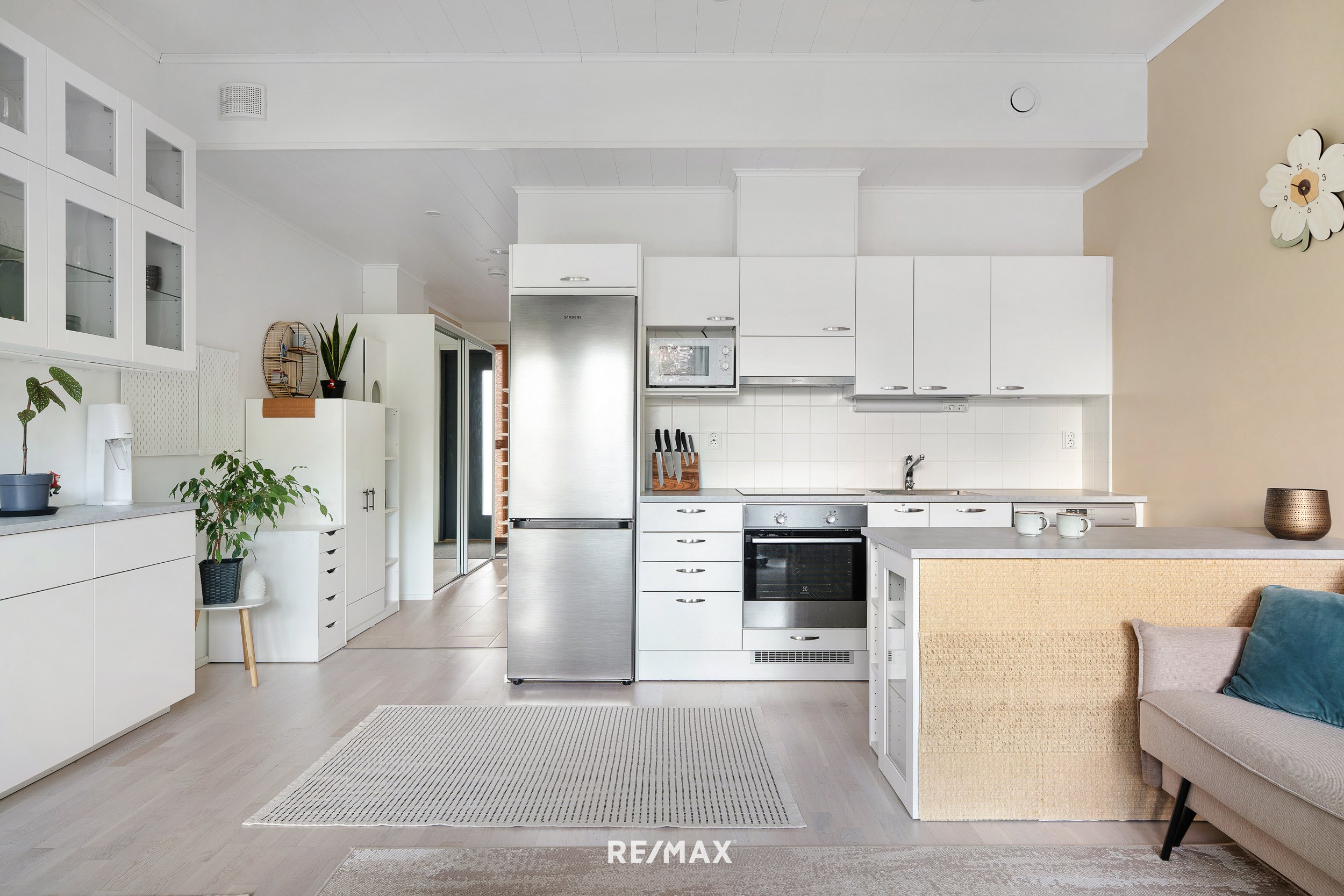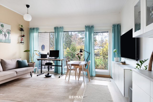 Asunnon olohuone ja keittiö muodostavat kodikkaan ja lämminhenkisen kodin sydämen, joka kutsuu viettämään aikaa. Käynti terassille ja omalle vehreälle pihalle tarjoaa lisätilaa oleskeluun ja tarjoaa luonnonläheisen maiseman.